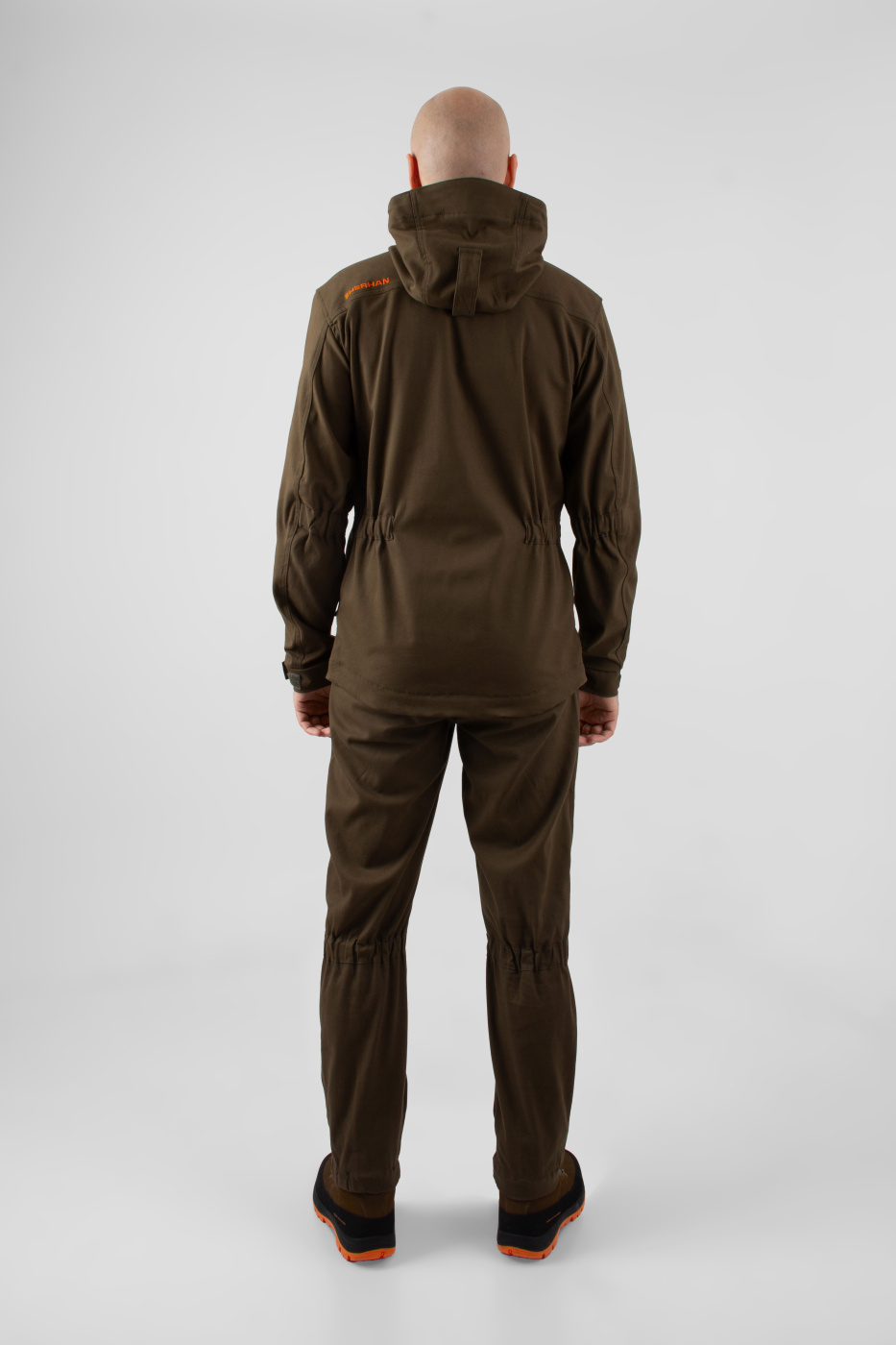 Куртка анатомического кроя с застежкой на прочную молнию с внутренней ветрозащитной планкой и интегрированным регулируемым в 2-х направлениях капюшоном. Низ рукавов и куртки также регулируются для идеальной посадки. А эластичные кулисы на талии и на рукавах в области локтей придадут атлетический вид и способствует отсутствию парусности. Куртка оснащена внешними карманами на молнии и внутренним влагозащитным карманом для документов и ценных вещей. Брюки с широким поясом на резинке и широкими шлевками обеспечивают комфортное ношение. Под коленками и снизу брюки заужены резинками, что позволяет легко заправлять их в берцы. . Два боковых кармана на брюках обеспечат удобное хранение мелочей. Места наибольшей нагрузки, такие как область плеч и коленей, усилены вторым слоем ткани для долговечности и надежности. Мужской костюм Шерхан - это не просто одежда, это надежный партнер в Вашем приключении на природе и городских джунглях.